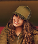 Polyester mesh rear panels. 6 panel. Mid profile. Stitched ventilation eyelets. Structured front panels. Pre-curved peak.