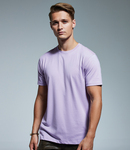 Fashion fit. Ribbed collar. Taped neck. Side seams. Twin needle stitching. Unbranded size label at neckline.