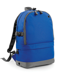 600D/420D polyester combination. Water resistant fabric. Grab handle. Padded adjustable shoulder straps. Compression straps. Padded back panel. Padded laptop compartment compatible up to 15.6". Dual compartments. Wet pocket. Organiser section. Elasticated bottle loop. Media pocket and headphone port. Metal ventilation eyelets. Tear out label. Capacity 18 litres.